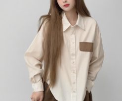 2023 Rose Pink Trendy Loose Lapel Long-sleeved All-match Cardigan Shirt Women Blouse