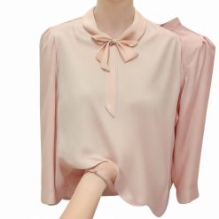 Spring Long Sleeve Turn Collar Pleated Sleeve Women Blouse Shirt