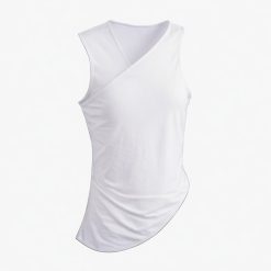 Square collar sleeveless white color side pleated casual fashion blouse shirts for women