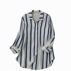 Lady blouse shirt stripe patchwork loose baggy girl top elegant casual long sleeve shirt dress women
