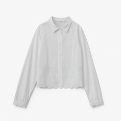 Embroidery white color long sleeve eyelet buttons up turn down collar casual fashion blouses tops for women