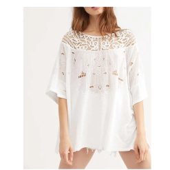 Ladies Summer Round Neck Embroidered Lace T-Shirt Neckline Handmade Color Embroidered XL Ladies Long Sleeve Shirt