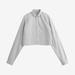 Fashion Chic Tops Front Button Long Sleeve Cropped Blouses With Pockets For Women