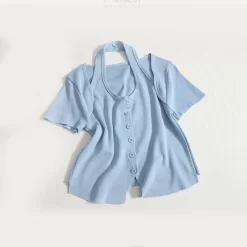 2024 Spring and Summer New Women’s Bow Strap Shoulder Short Slim Top Hot Girl Short Sleeve T-Shirt