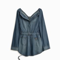 Spring Denim Blouse Jacket Women Denim Shirt Dresses Long Sleeve Distressed Jean Dress Button Down Casual Tunic Top